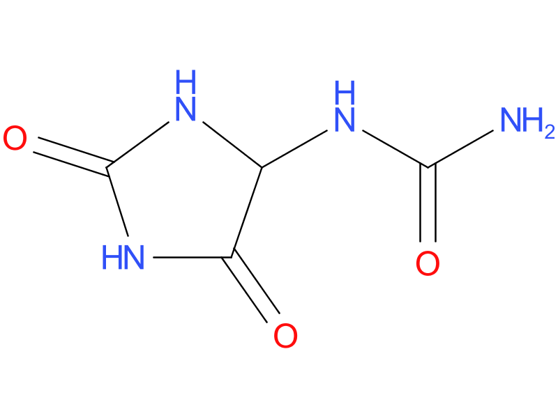 allantoin A urea hydantoin that is found in URINE and PLANTS and is used in dermatological preparations.