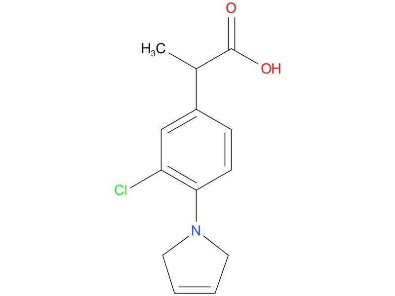 | pirprofen | anti-inflammatory agent used in therapy of rheumatoid arthritis; prostaglandin synthetase inhibitor; more potent than indomethacin; structure |