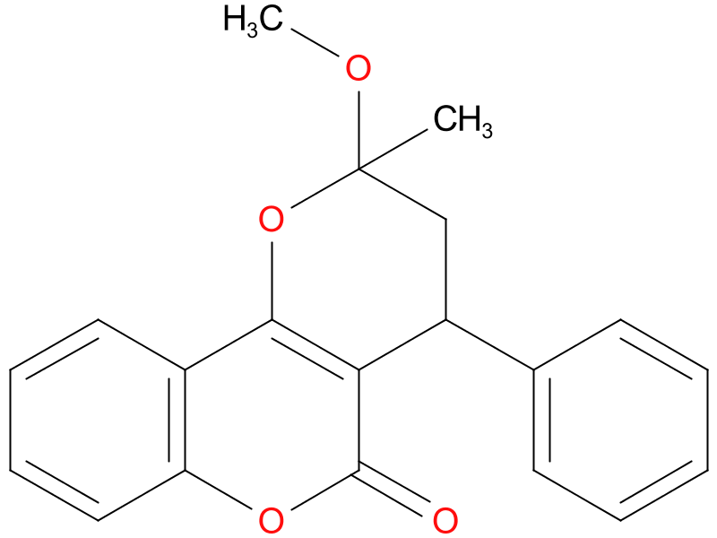 | cyclocoumarol | anticoagulant similar to, but less potent than warfarin; may cause hemorrhage if used indiscriminately; minor descriptor (76-84); on-line search 4-HYDROXYCOUMARINS (76-84); Index Medicus search 4-HYDROXYCOUMARINS (77-84), COUMARINS (76); RN given refers to cpd without isomeric designation |