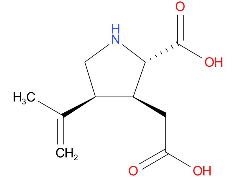 | kainic acid | (2S-(2 alpha,3 beta,4 beta))-2-Carboxy-4-(1-methylethenyl)-3-pyrrolidineacetic acid. Ascaricide obtained from the red alga Digenea simplex. It is a potent excitatory amino acid agonist at some types of excitatory amino acid receptors and has been used to discriminate among receptor types. Like many excitatory amino acid agonists it can cause neurotoxicity and has been used experimentally for that purpose. |