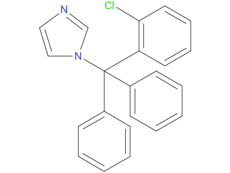 | clotrimazole | An imidazole derivative with a broad spectrum of antimycotic activity. It inhibits biosynthesis of the sterol ergostol, an important component of fungal CELL MEMBRANES. Its action leads to increased membrane permeability and apparent disruption of enzyme systems bound to the membrane. |