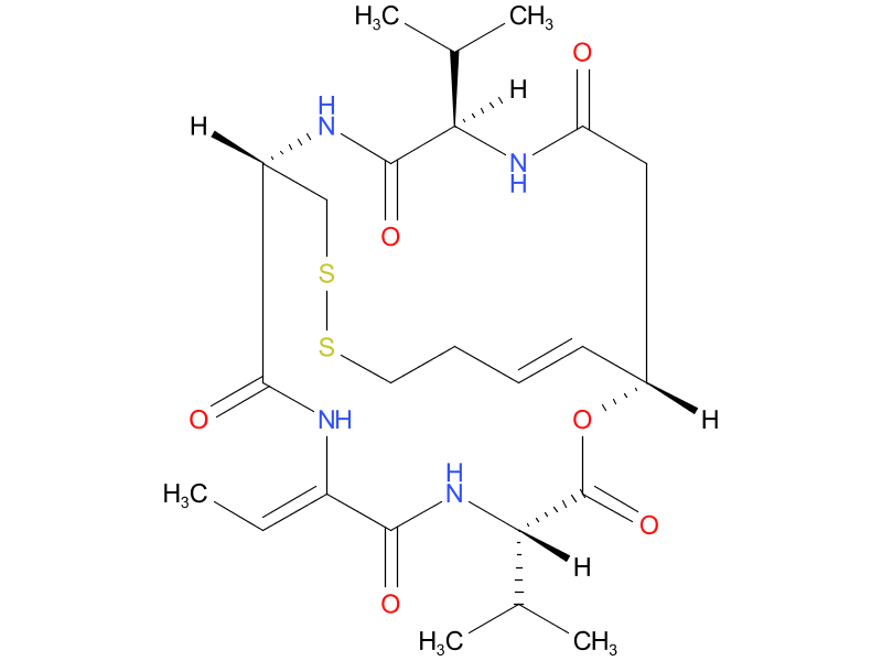 | romidepsin | a bicyclic depsipeptide and a potent histone deacetylase inhibitor from Chromobacterium violaceum |