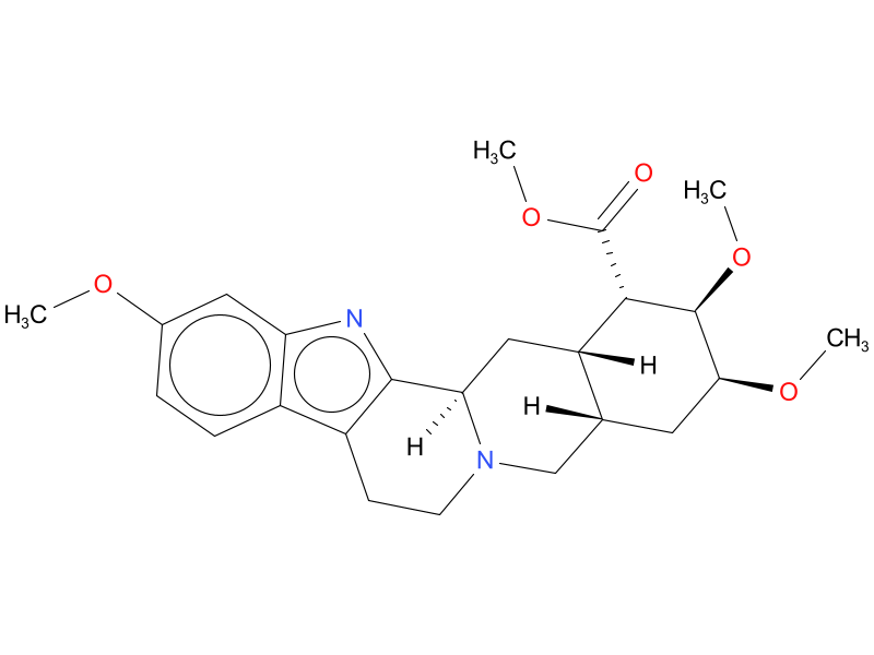 | reserpine | An alkaloid found in the roots of Rauwolfia serpentina and R. vomitoria. Reserpine inhibits the uptake of norepinephrine into storage vesicles resulting in depletion of catecholamines and serotonin from central and peripheral axon terminals. It has been used as an antihypertensive and an antipsychotic as well as a research tool, but its adverse effects limit its clinical use. |