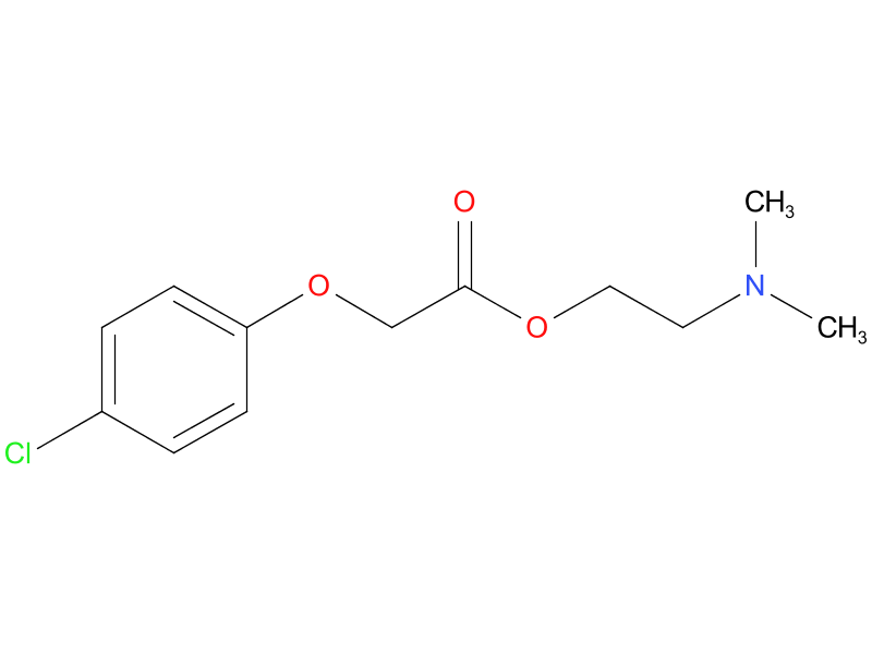 | meclofenoxate | An ester of DIMETHYLAMINOETHANOL and para-chlorophenoxyacetic acid. |