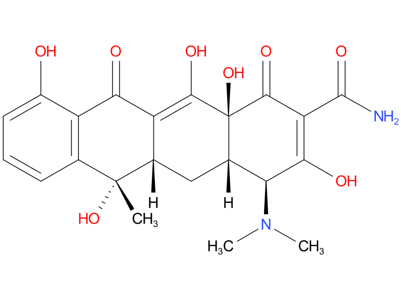 | doxycycline | A synthetic tetracycline derivative with similar antimicrobial activity. |