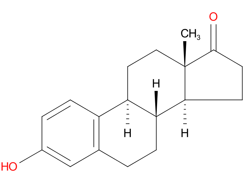 | estrone | An aromatized C18 steroid with a 3-hydroxyl group and a 17-ketone, a major mammalian estrogen. It is converted from ANDROSTENEDIONE directly, or from TESTOSTERONE via ESTRADIOL. In humans, it is produced primarily by the cyclic ovaries, PLACENTA, and the ADIPOSE TISSUE of men and postmenopausal women. |