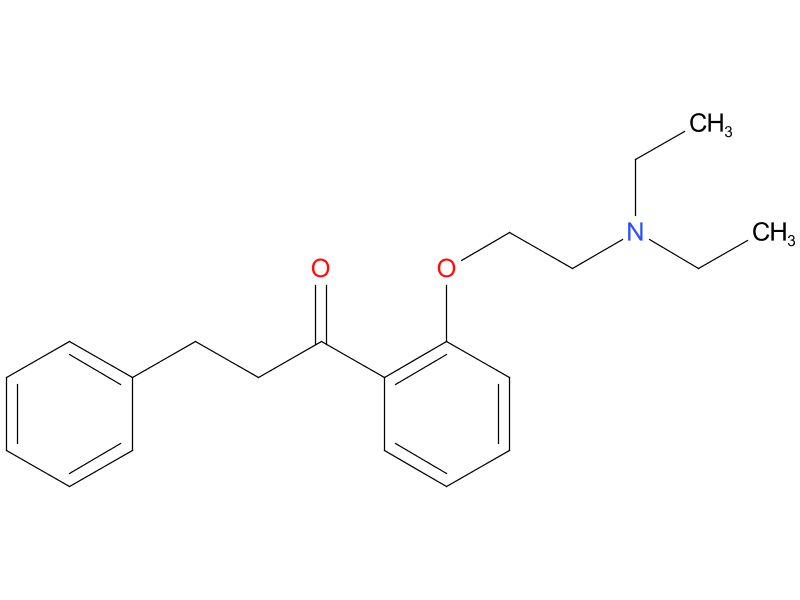 etafenone used in therapy of anigna pectoris; RN given refers to parent cpd; synonym baxacor is HCl; structure