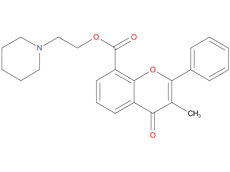 | flavoxate | A drug that has been used in various urinary syndromes and as an antispasmodic. Its therapeutic usefulness and its mechanism of action are not clear. It may have local anesthetic activity and direct relaxing effects on smooth muscle as well as some activity as a muscarinic antagonist. |