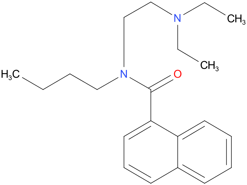 | bunaftine | N-Butyl-N-(2-(diethylamino)ethyl)-1-naphthamide. A proposed antiarrhythmic that prolongs myocardial refractory period and stabilizes cell membranes. |