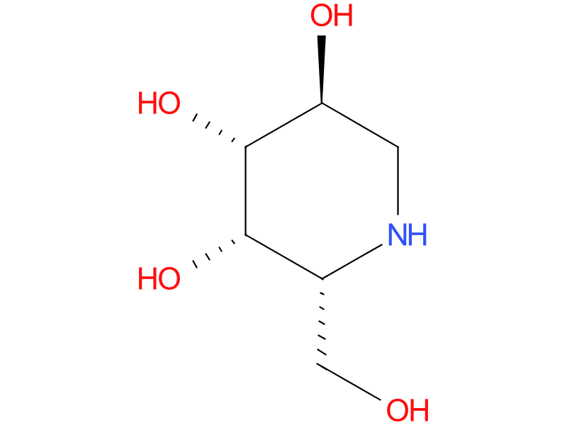 | migalastat | Migalastat is a pharmacological chaperone that is designed to selectively and reversibly bind with high affinity to the active sites of certain mutant forms of alpha-Gal A, the genotypes of which are referred to as amenable mutations. Migalastat binding stabilizes these mutant forms of alpha-Gal A in the endoplasmic reticulum and facilitates their proper trafficking to lysosomes where dissociation of migalastat restores alpha-Gal A activity, leading to the catabolism of GL-3 and related substrates. |