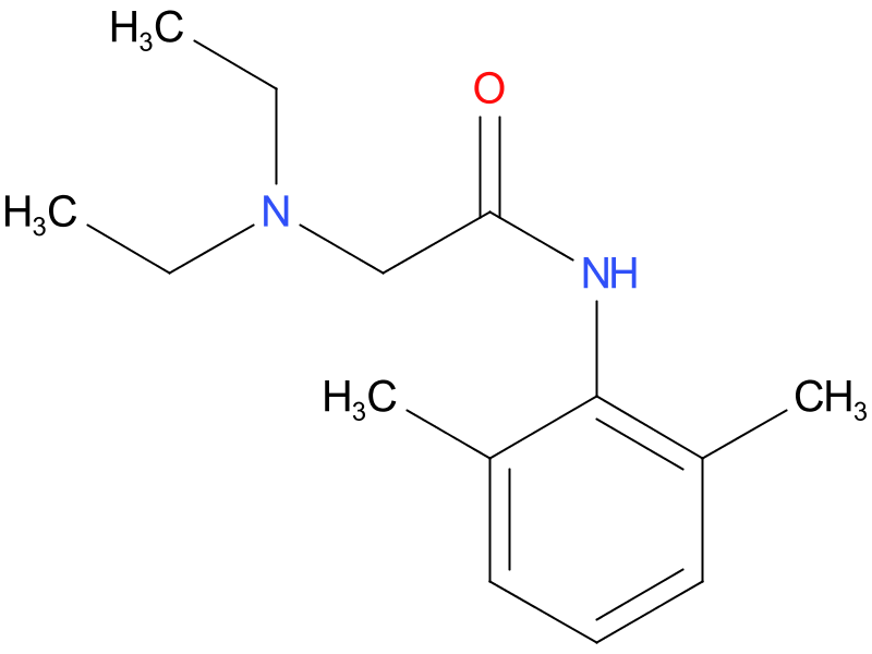 | lidocaine | A local anesthetic and cardiac depressant used as an antiarrhythmia agent. Its actions are more intense and its effects more prolonged than those of PROCAINE but its duration of action is shorter than that of BUPIVACAINE or PRILOCAINE. |