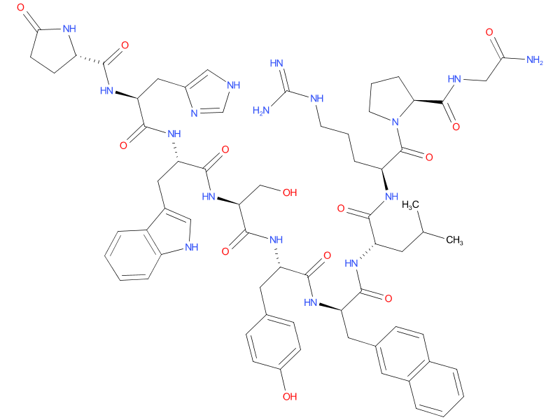 | nafarelin | A potent synthetic agonist of GONADOTROPIN-RELEASING HORMONE with 3-(2-naphthyl)-D-alanine substitution at residue 6. Nafarelin has been used in the treatments of central PRECOCIOUS PUBERTY and ENDOMETRIOSIS. |