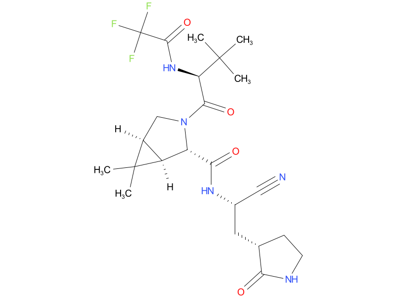 | nirmatrelvir | Nirmatrelvir plus ritonavir (Paxlovid) is an antiviral therapeutic developed by Pfizer for the treatment and post-exposure prophylaxis of coronavirus disease 2019 (COVID-19). It received conditional approval by EMA, FDA and PMDA. Nirmatrelvir (PF-07321332) is a peptidomimetic inhibitor of the SARS-CoV-2 main protease (Mpro), also referred to as 3C-like protease (3CLpro) or nsp5 protease. Inhibition of the SARS-CoV-2 Mpro renders the protein incapable of processing polyprotein precursors which leads to the prevention of viral replication. Ritonavir inhibits the CYP3A-mediated metabolism of PF-07321332, thereby providing increased plasma concentrations of PF-07321332. |
