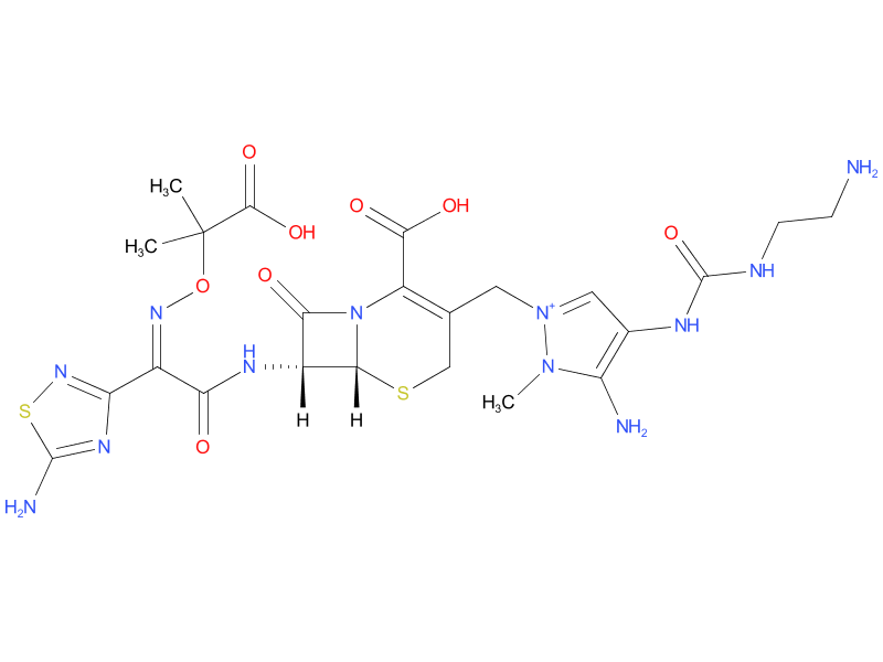 | ceftolozane | Ceftolozane belongs to the cephalosporin class of antibacterial drugs. The bactericidal action of ceftolozane results from inhibition of cell wall biosynthesis, and is mediated through binding to penicillin-binding proteins (PBPs). Ceftolozane is an inhibitor of PBPs of P. aeruginosa (e.g., PBP1b, PBP1c, and PBP3) and E. coli (e.g., PBP3). |